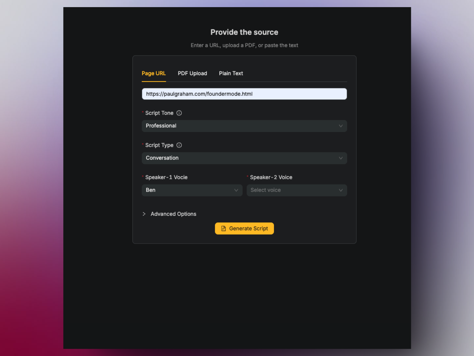 1. Share your content (URL, PDF, or text)